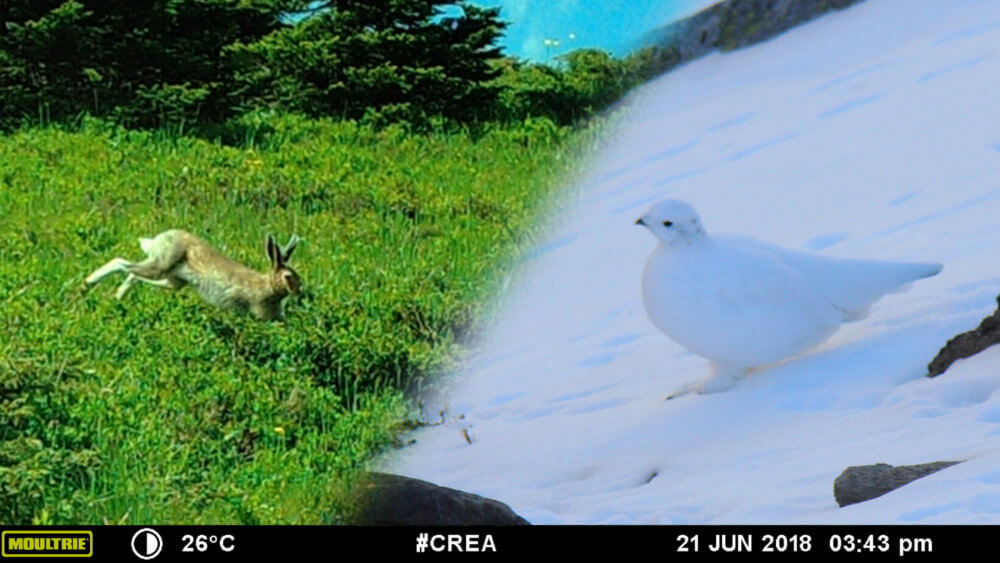 Comme souvent lors de ses travaux sur le terrain, le CREA Mont-Blanc s’est entouré de volontaires pour multiplier les opportunités de rencontrer lièvres et lagopèdes. Ces deux espèces ont beau être symboliques des Alpes, leur rareté, leur discrétion et l’environnement difficile d’accès dans lequel elles vivent les rendent bien souvent insaisissables.